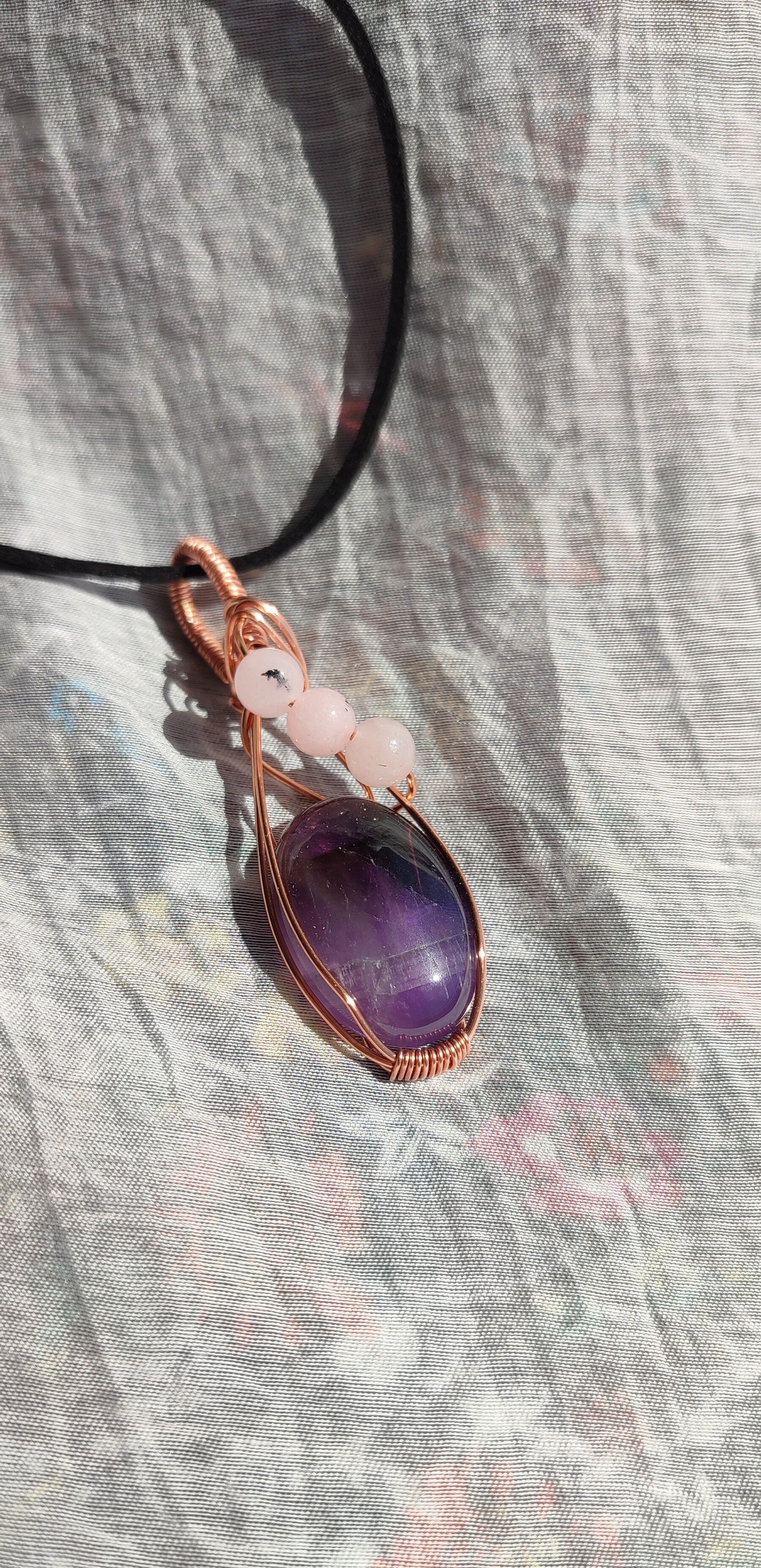 Ciondolo in pietra naturale intrecciato con filo di rame placcato argento.